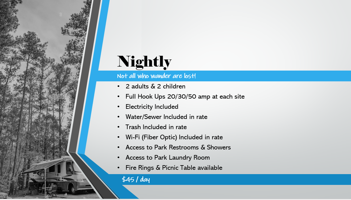 See park map below for available sites.